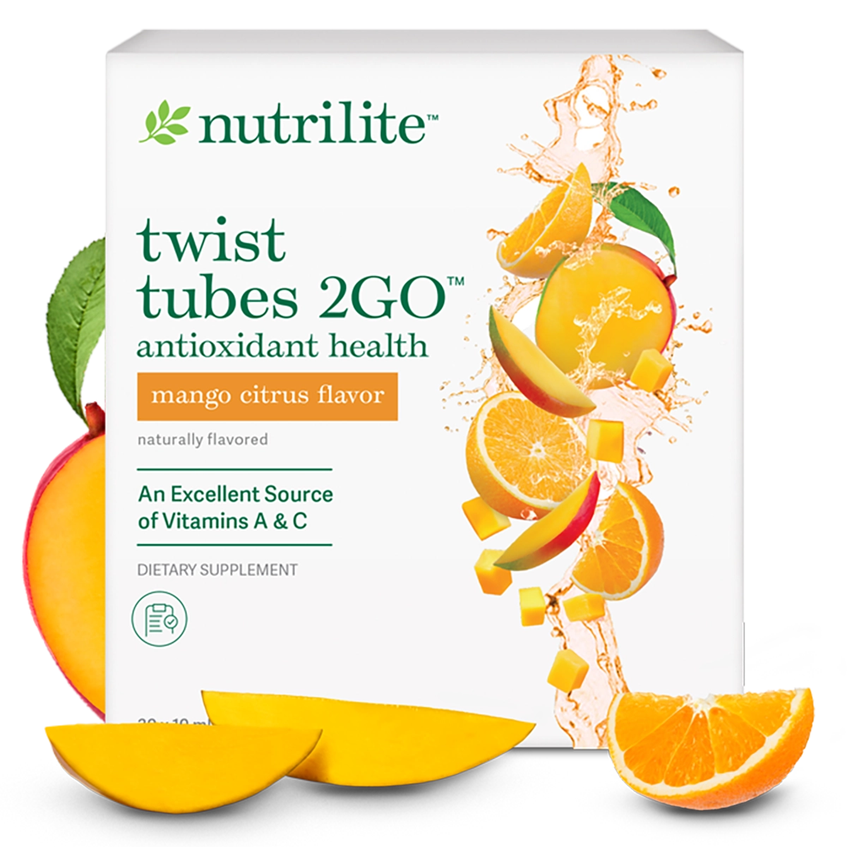 The Antioxidant Drink Supplement Nutrilite Twist Tubes 2GO supports cellular protection and daily wellness with a convenient mango citrus drink formula.