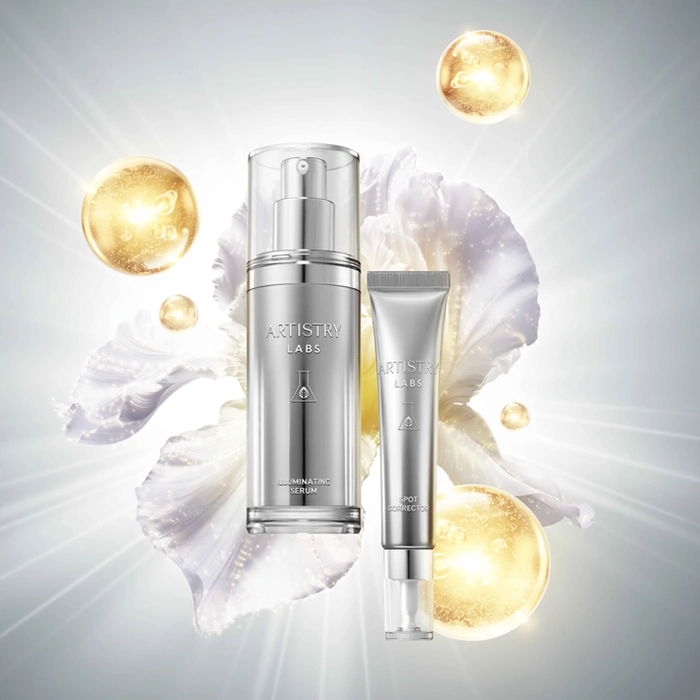 The Artistry Labs Illuminating System is an innovative skincare solution designed to help visibly brighten the skin and improve uneven skin tone. This advanced system combines two complementary treatments — an illuminating serum and a targeted spot corrector — working together to help reduce the appearance of dark spots, discoloration, and dull-looking skin.