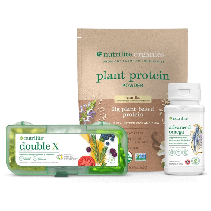 Nutrilite Everyday Nutrition Solution – Chocolate is a comprehensive daily nutrition bundle designed to help support overall wellness and fill common nutrient gaps. The bundle combines plant-based protein, essential vitamins, minerals, and omega-3 fatty acids to help support energy, immune health, muscle maintenance, and overall vitality.