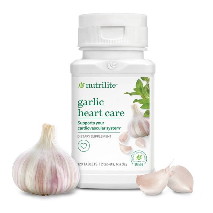 Nutrilite Garlic Heart Care is a dietary supplement developed to support everyday cardiovascular wellness. The formula includes garlic, a natural ingredient traditionally used in many cultures for its nutritional and wellness benefits.