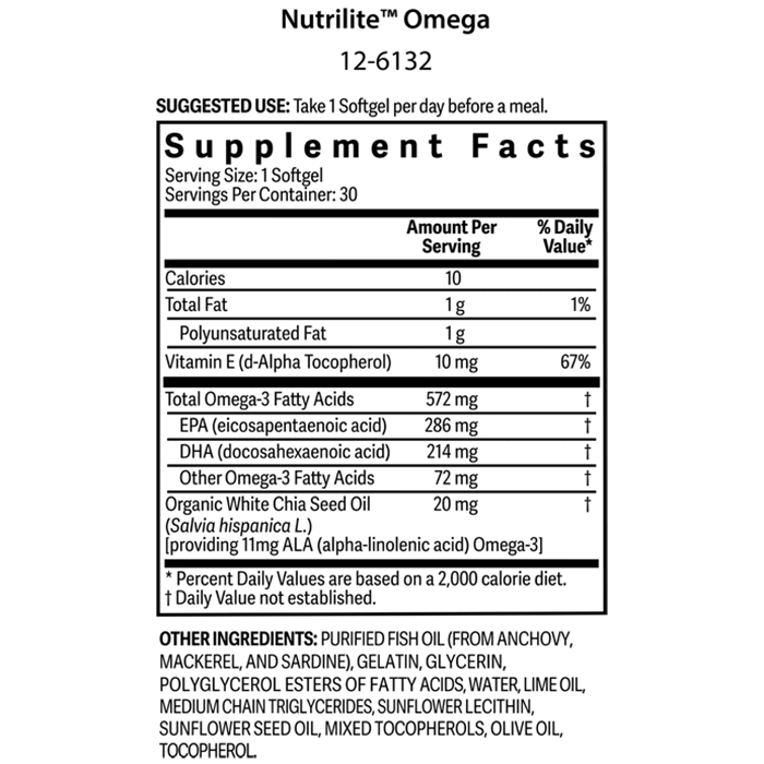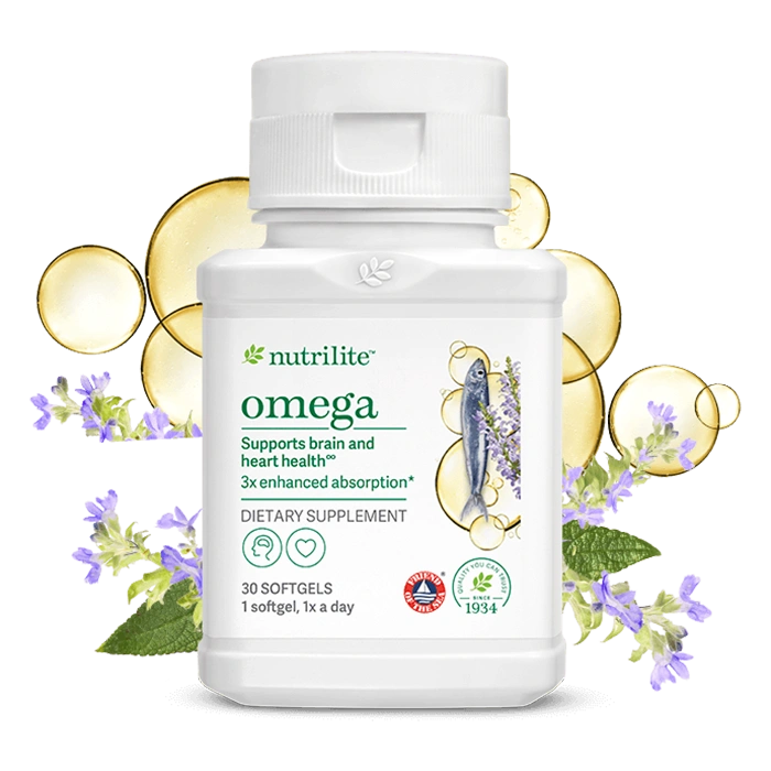 Nutrilite Omega is a daily supplement designed to support heart, brain, and overall health with essential fatty acids for balanced nutrition.