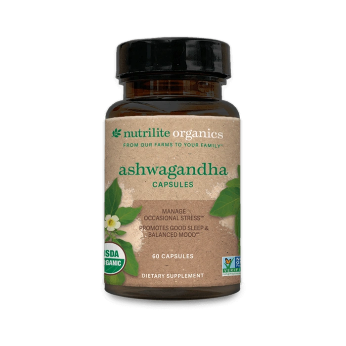 Nutrilite Organics Ashwagandha Capsules is a plant-based supplement designed to help the body adapt to occasional stress and support emotional balance. The product is formulated with organic ashwagandha root and rosemary extract to help maintain calmness and promote better sleep.