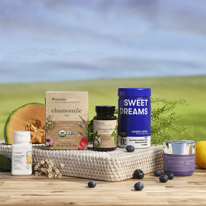 This bundle combines several Nutrilite and Artistry products that work together to support both daytime calmness and nighttime recovery, helping you maintain overall wellbeing and daily balance.