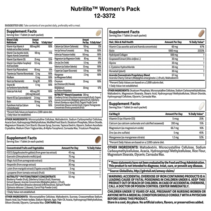 Nutrilite Women’s Daily Nutrition Pack is designed to provide a convenient combination of supplements that help support overall wellness as part of a healthy diet.