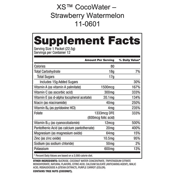 XS hydration drink mix Strawberry Watermelon delivers electrolyte support with coconut water powder, helping maintain hydration during workouts and daily activities.